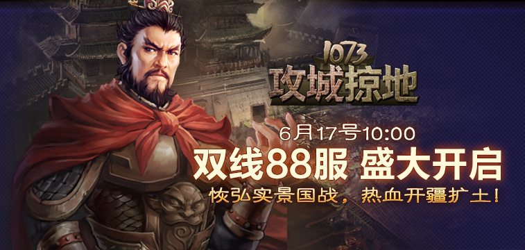 1073《攻城掠地》双线88服6月17日10时盛大开启!《攻城掠地》是一款强调“国战”的战争策略网页游戏。实景还原三国战图,包含多达300个关隘城池,开创全景即时国战!文臣武将齐数登场,打破“重武轻文”的游戏桎梏,内政事务、军师上阵、计策绝技演绎文官真本色!其次,递进掩杀式即时战斗模式、地形系统的引入,以及四大资源、战术、兵器、科技、皇城官职战等丰富的特色玩法,让你充分自由的享受鼎足争雄的热血,圆满开疆扩土、统一天下的宏梦!